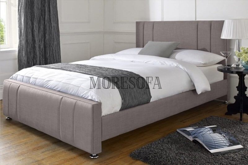Mẫu giường ngủ bằng gỗ tự nhiên bọc nỉ màu xám sang trọng phong cách đương đại