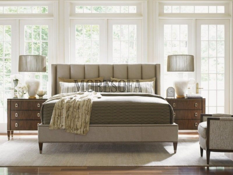 Giường ngủ bọc nỉ sang trọng kết hợp khung gỗ óc chó tự nhiên nhập khẩu đầy sang trọng và đẳng cấp