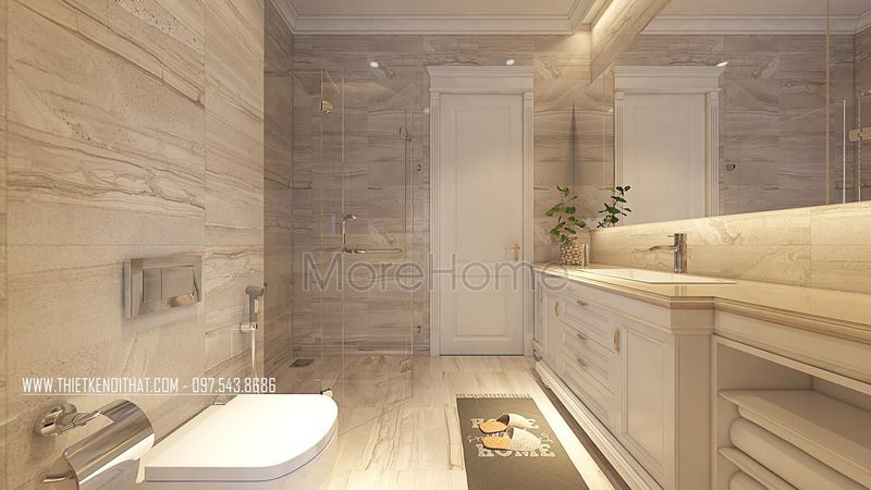 Phòng tắm không gian sinh hoạt hằng ngày nội thất thiết kế đáp ứng phục vụ tốt gia chủ dễ chịu thoải mái.