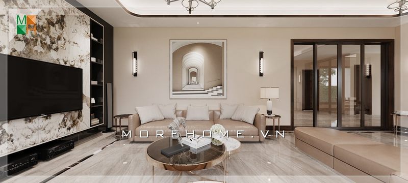 Thiết kế nội thất phòng khách phong cách tân cổ điển mang đến vẻ đẹp sang trọng và quý phái