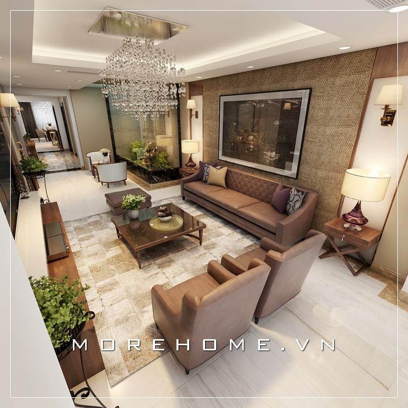 Mẫu thiết kế phòng khách chung cư cao cấp với nội thất hiện đại,đầy đủ tiện nghi mang đến không gian tiếp khách, thư giãn lí tưởng cho gia chủ
