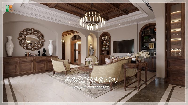 Chiêm ngưỡng mẫu thiết kế phòng khách biệt thự sang trọng với nội thất cao cấp được bố trí hợp lí cuốn hút mọi ánh nhìn