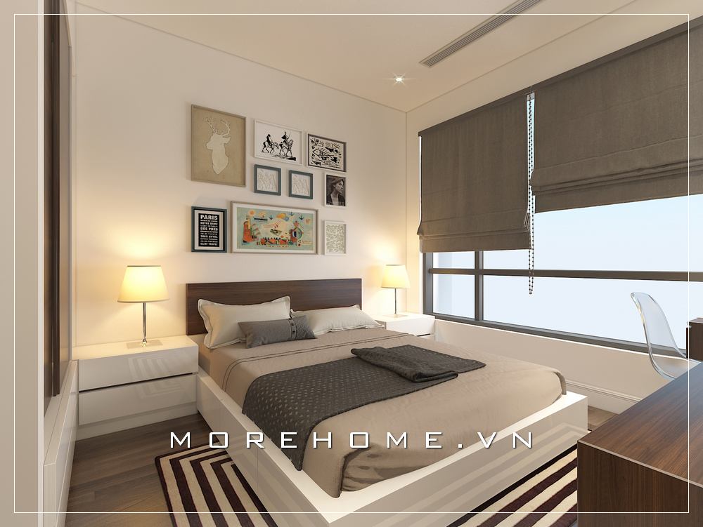 Mẫu thiết kế nội thất phòng ngủ nhỏ hiện đại, thoáng đãng với chiếc giường ngủ gỗ công nghiệp
