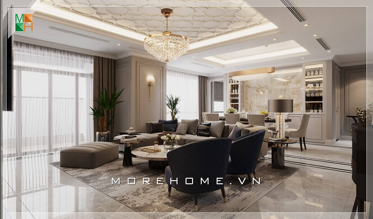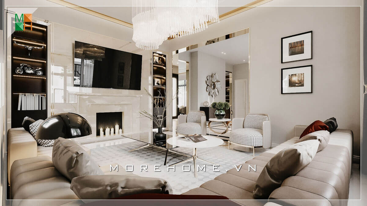 Thiết kế nội thất phòng khách phong cách tân cổ điển sang trọng, cao cấp